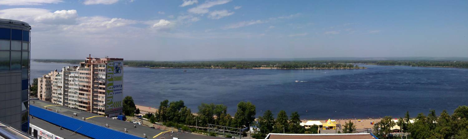 Панорамное остекление здание, великолепный вид на Волгу.